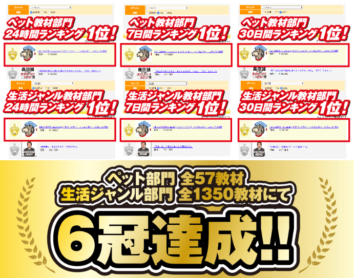ペット部門の教材だけでなく、生活ジャンル部門の教材でも第1位を獲得している、人気の教材。
